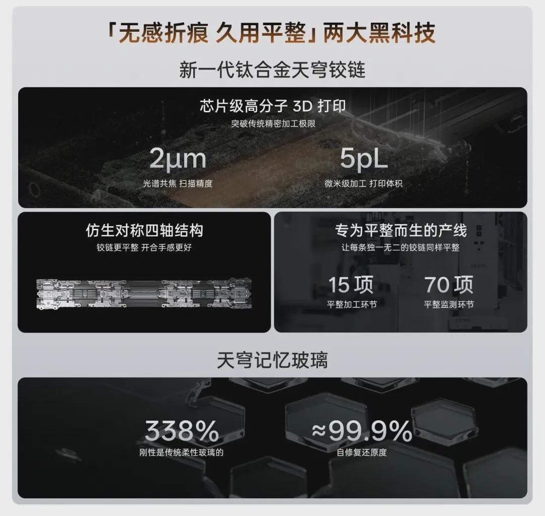 还有天穹记忆玻璃,这玩意儿的刚性是传统柔性玻璃的3倍以上,但柔韧度惊人,弯折后居然有99.9%的自修复还原度。