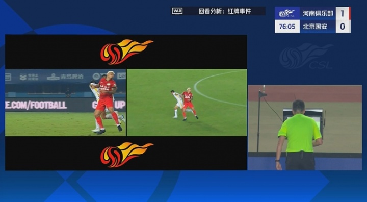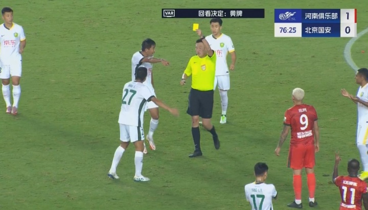 王刚无球状态下击打卡多索面部,主裁判看过VAR后处以黄牌警告 xiaoqiao 2026-01-26 德甲 26 0 09月12日讯 中超第24轮,河南vs国安。比赛第77分钟,王刚无球状态下击打卡多索面部,主裁判看过VAR后对其处以黄牌警告。